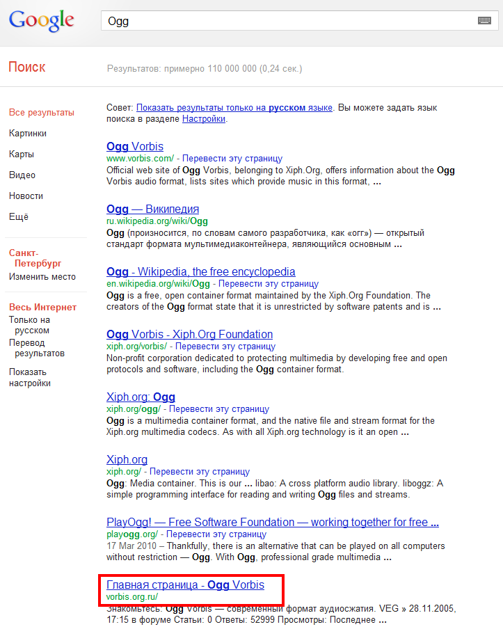 По запросу "ogg" из ЕС - 11 место, по запросу "ogg vorbis" - 4е.